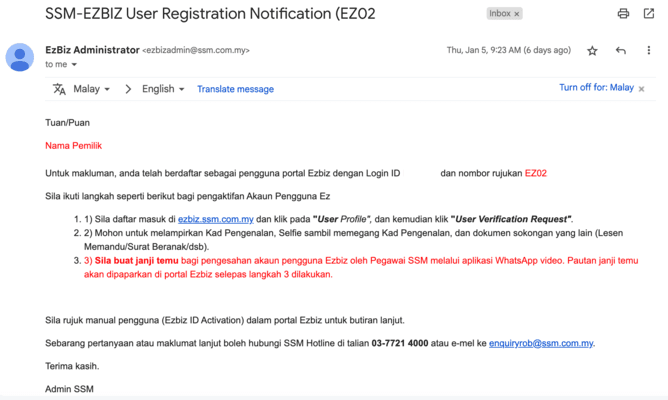 The video call will be relatively fast and conducted through WhatsApp for 2-3 minutes. The SSM officer will require you to read your IC number and ask you to hold your IC neck level before they take a screenshot.